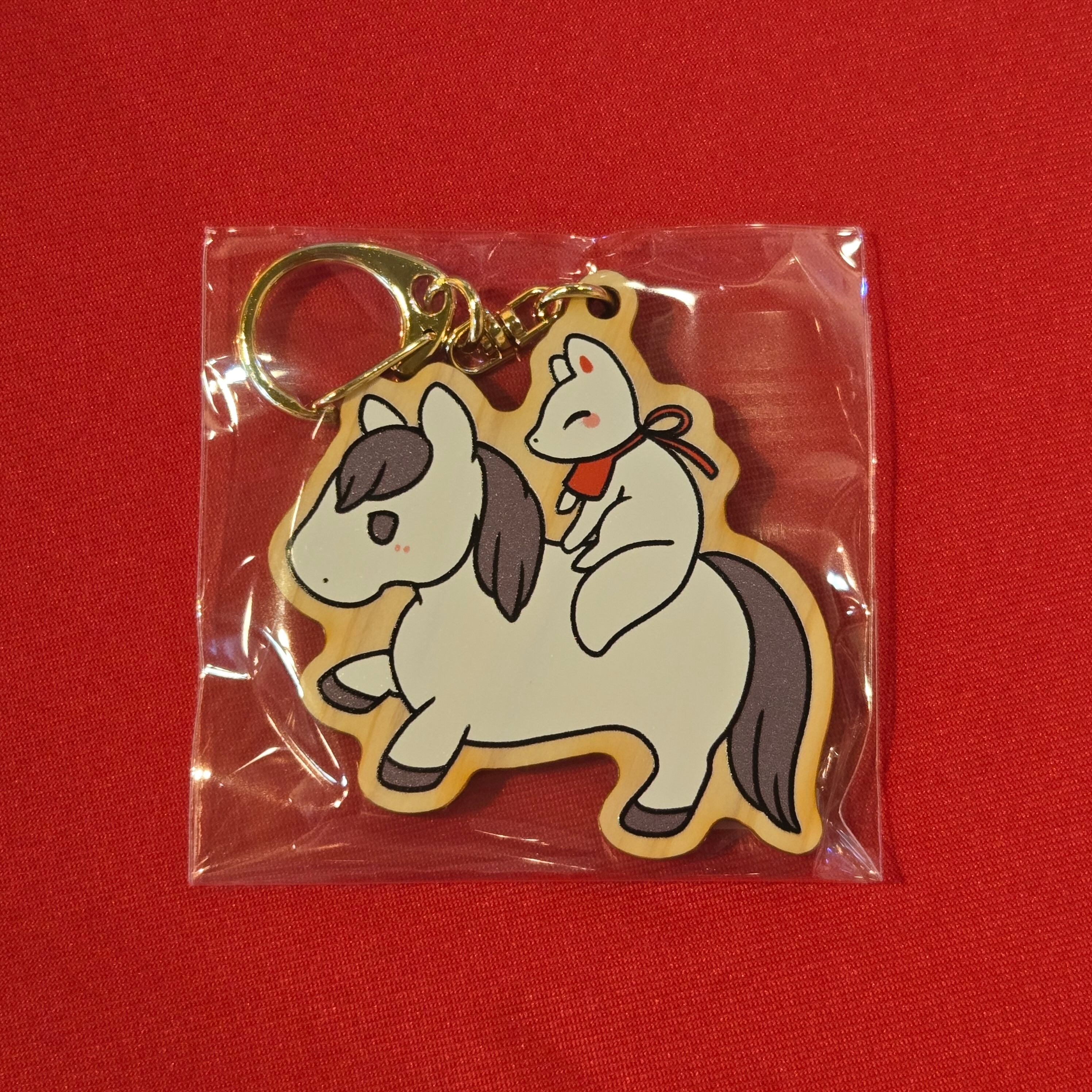 狐月稲荷社 木製キーホルダー 馬乗りきつね